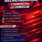 Interessado(a)s encaminhar currículo, mencionando no assunto: Vaga de Recrutador(a) Comercial.