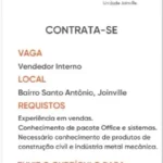 Interessado(s) encaminhar currículo, mencionando no assunto: Vaga de Vendedor Interno.