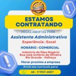 Fábrica do ramo alimentício, localizada em Palhoça, busca identificar no mercado, profissional qualificado para exercer a função de: Assistente Administrativo.