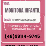 O Kids park está com uma vaga em aberto para monitora infantil, a vaga consiste em monitora crianças em um espaço kids dentro do shopping Itaguaçu,