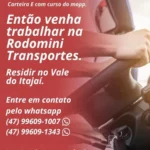 Então venha trabalhar na Rodomini Transportes.